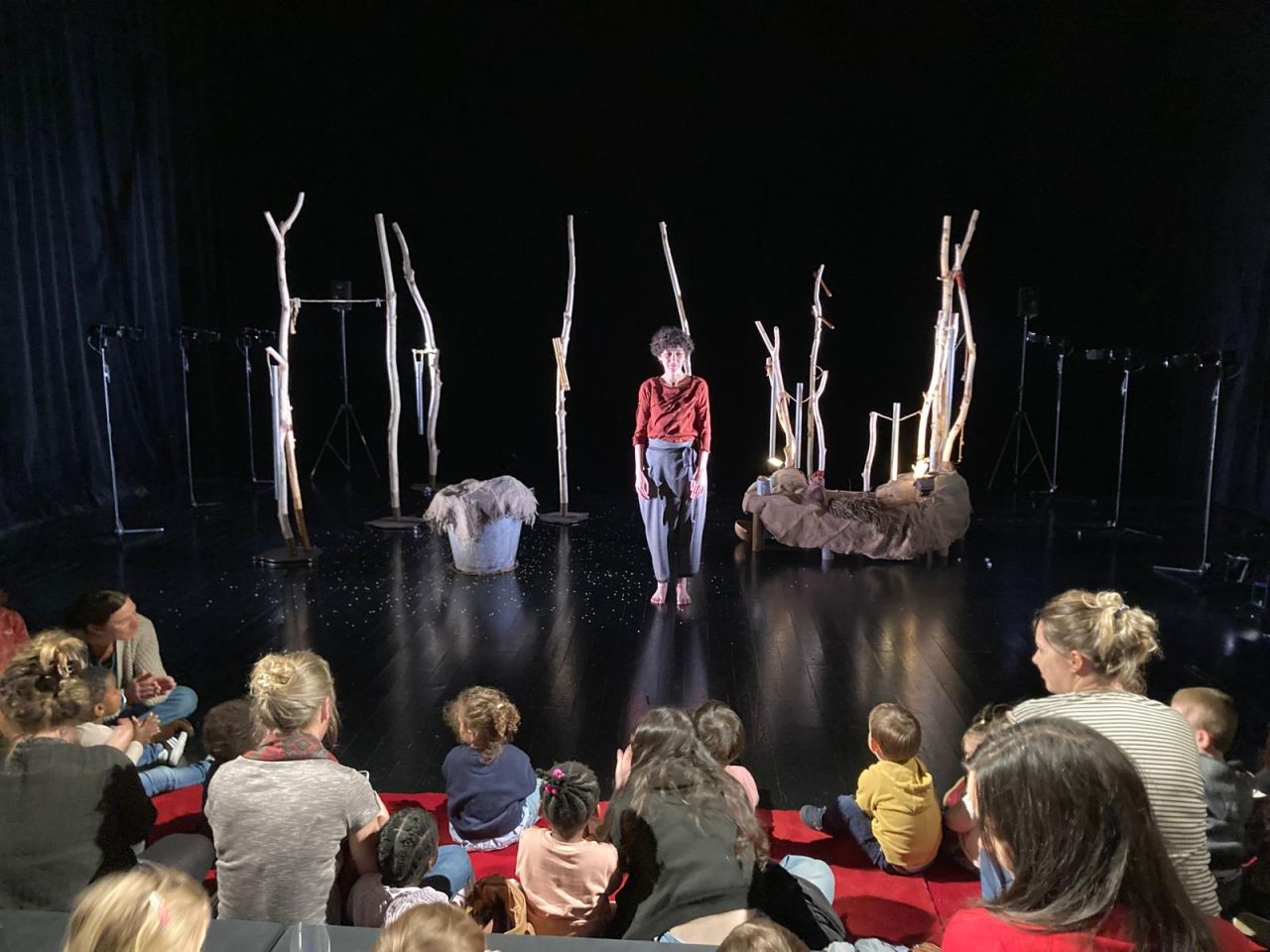 Jeudi 9 octobre, les élèves des 2 classes de MS-GS sont allés à la Maison du Théâtre en bus. Ils ont assisté au spectacle « L’Envolée Sauvage » de la compagnie O bruit doux. C’est un solo pour trois flûtes et orchestre de forêt en plein ciel. Dans cette pièce très visuelle, c’est la musique qui raconte, se raconte, au cœur d’un décor composé de troncs de bouleaux, de tuballophones et de fagots de branches fines.