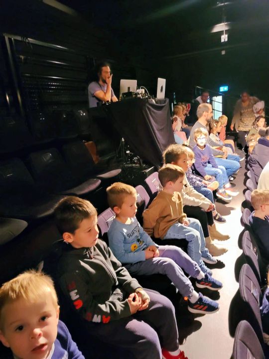 Les élèves de CP se sont rendus à la Maison du théâtre de Lambézellec ce jeudi matin. Ils ont assisté à la représentation de "Bonobo", un concert dessiné qui a fait peur par moments, mais qui a bien plu aux enfants. Le multi-instrumentiste Sébastien Capazza était seul sur scène pendant que défilaient les illustrations d'Alfred.
