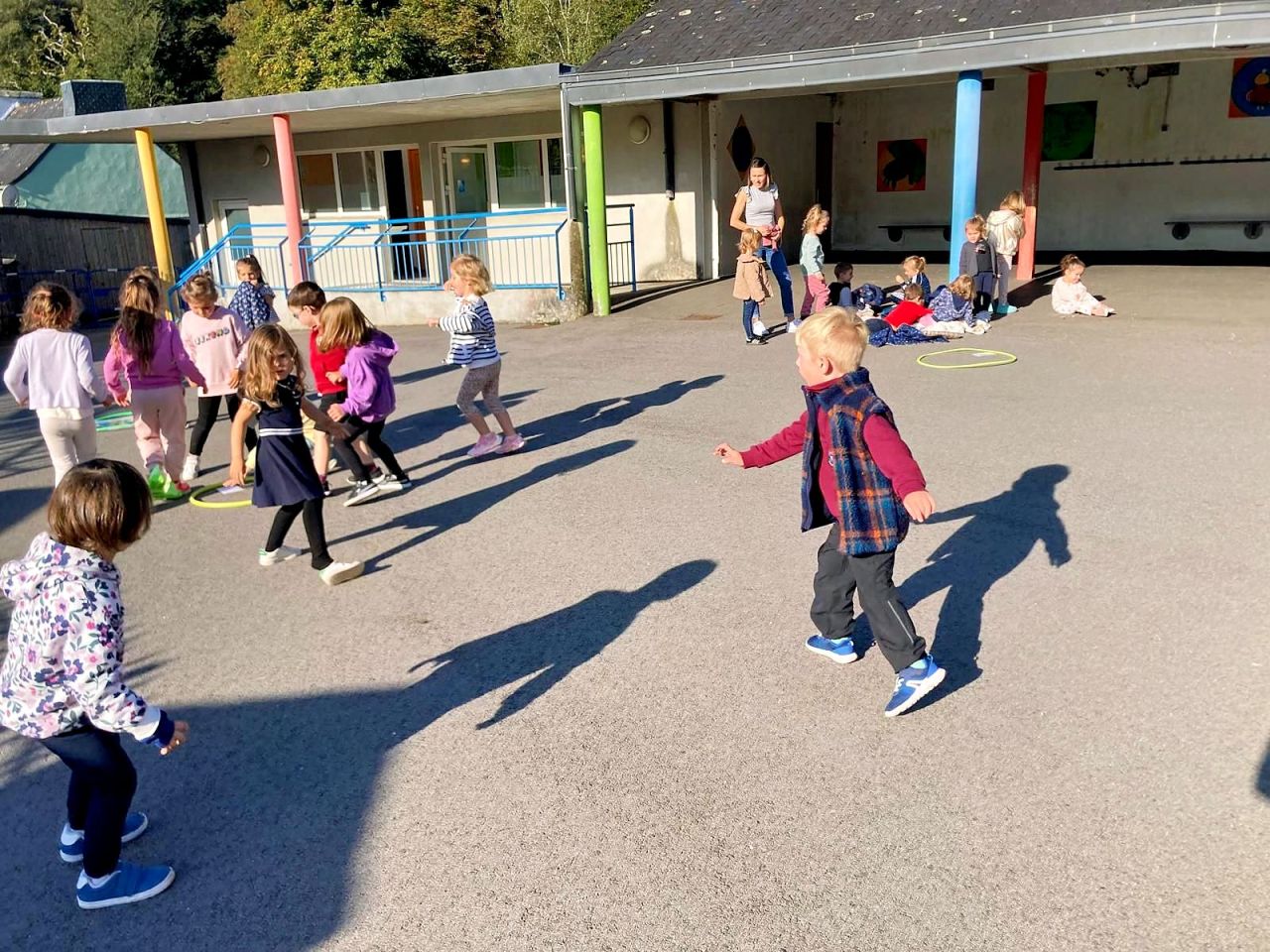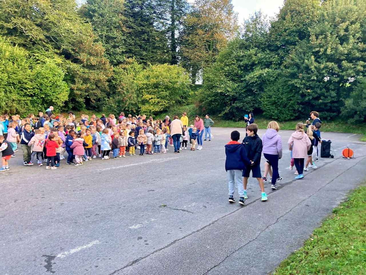 En matinée, les groupes des maternelles ont arpenté les abords de l'école, le bourg et l'entrée du bois.