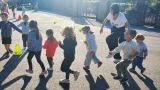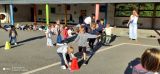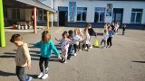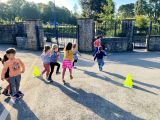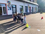 Des jeux de déplacements par équipe avaient pour but de reconstituer le puzzle de la carte de France en 6 morceaux pour les maternelles et pour les primaires il s'agissait de repositionner les régions de France obtenues après des défis déplacements en équipe.
